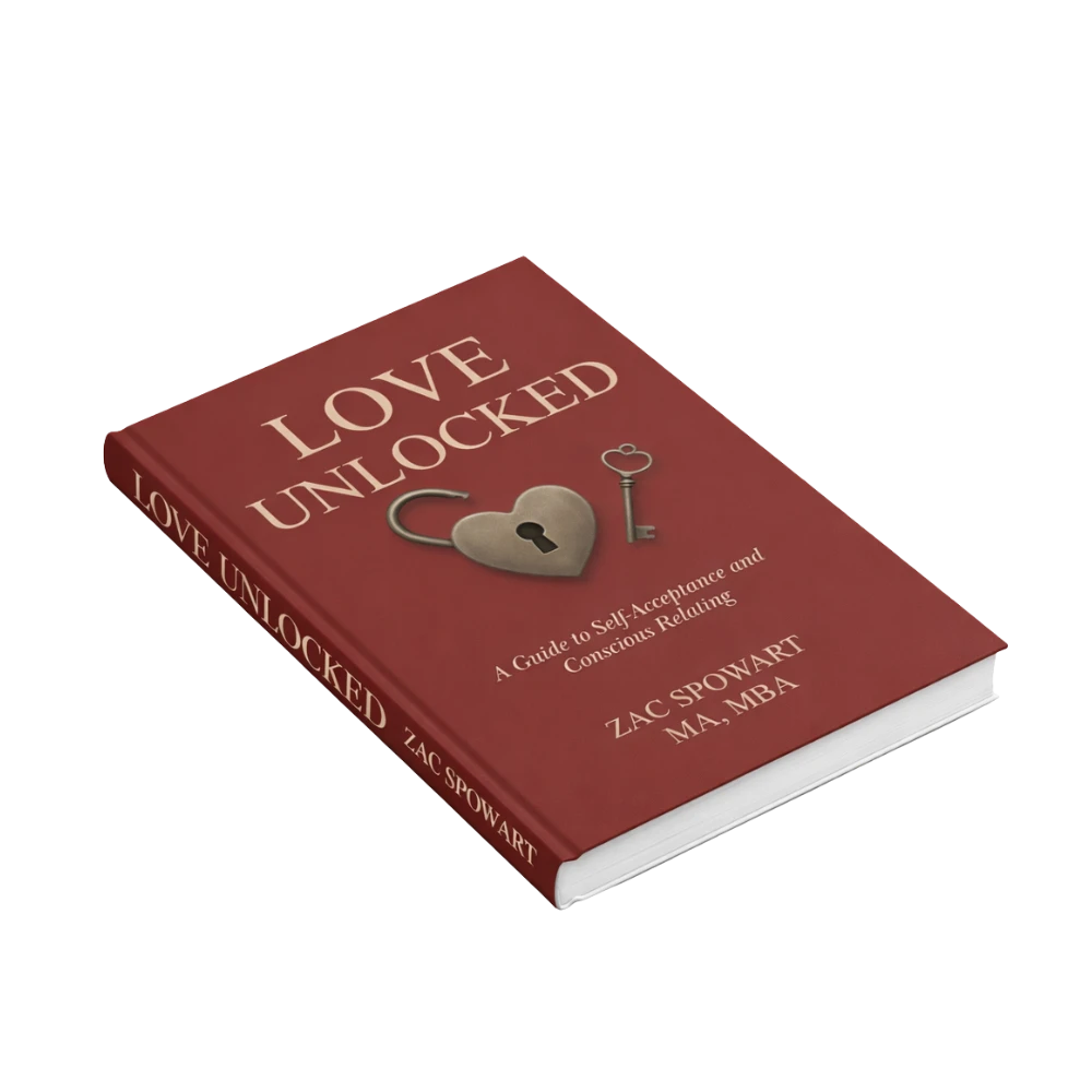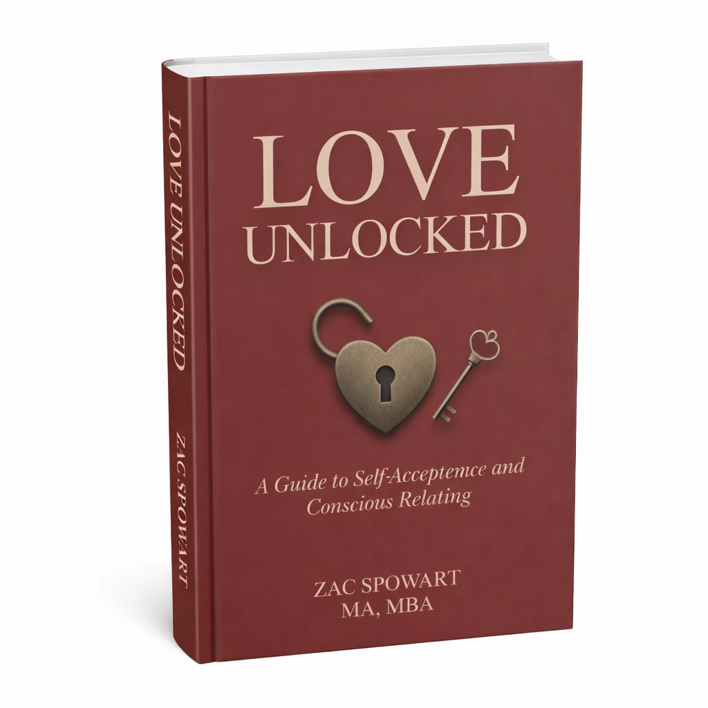 Love Unlocked is a guide to self-acceptance and conscious relating by Zac Spowart, MA, MBA. Across 16 chapters, it explores attachment styles, emotional regulation, identity, and what it truly means to love — yourself and others. Rooted in psychology, spirituality, and nearly two decades of clinical experience.